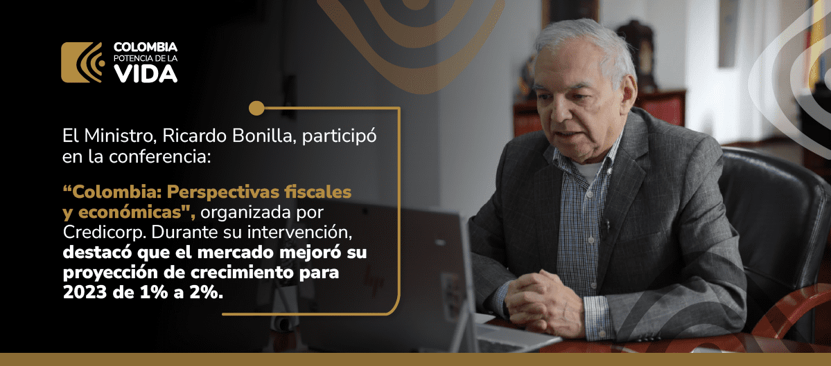 El Ministro destacó que Colombia va por la senda correcta, reduciendo el déficit y cumpliendo la regla fiscal. Así mismo, resaltó la importancia de mejorar la producción agrícola, de vacunas y del sector textil, para fortalecer la economía del país.