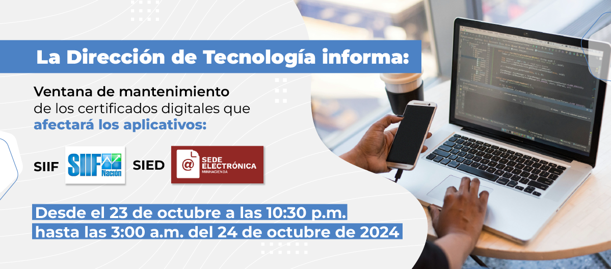 La Dirección de Tecnología informa: Ventana de mantenimiento de los certificados digitales que afectará los aplicativos: SIIF y SIED (Sede Electrónica)